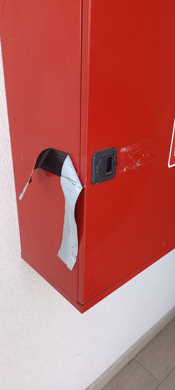 | 82. | „A” lépcsőház 4. emeletén tűzivízcsap szekrény nem záródik. BK Javítjuk BK Elkészült: 2025 07 08 KK A tűzcsapok megfelelő záródását jellemzően a tömlő dobja akadályozza, egyes esetekben a zárszerkezet hibája. Tűzvédelmi karbantartás során a zárszerkezetet ellenőrizni szükséges és könnyen oldható plombálással fixálni a záródást. Általános | |