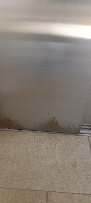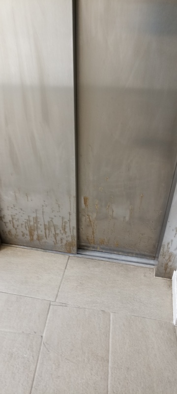 | 12. | „A” lépcsőház 7. emeletén a liftajtó alja korrodálódott. BK Javítjuk BK Elkészült: 2025 07 24 KK A liftek utólagos fóliázása nem tekinthető I. osztályú kivitelezésnek, a korrózió ilyen formában történő „tüneti kezelése” nem megfelelő, a takart részek állapota nem ellenőrizhető. Általános | |