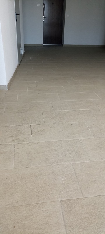 | 14. | 708-as és 718-as lakás között a járólap erősen szennyezett, a gépi takarítás hiánya miatt az intenzív szennyeződés az épület több részén megfigyelhető. BK Esztétikai probléma géppel is fel lett takarítva, a többszöri gépi takarítás javítja majd valamennyire a tisztaságát. KK Az épületet tiszta állapotban kell átadni. BK Többször tisztítva lett már a felület, legutóbb géppel több mint egy hónapja, mert már akkor arról beszéltünk hogy átadásra kerül a takarítás. KK A gépi takarítás csak minimális mértékben volt képes javítani a burkolat esztétikai állapotán. Általános | |