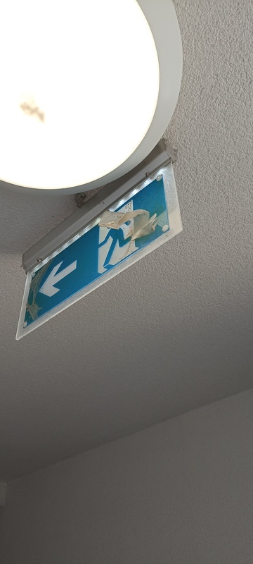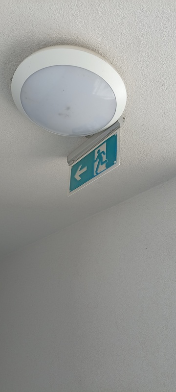 | 32. | 8. emeleten a menekülési irányfény szabálytalanul lett felszerelve, a menekülési irányra párhuzamos kiépítés nem nyújt megfelelő vizuális észlelést. BK A ház megkapta a használatba vételi engedélyt ezzel a kialakítással a szakhatóságoktól Ez irányfény a 804-es lakás ajtótól kb 1,5 méterre van a folyosón, a lakó mikor kijön a lakásból ezt és a tőle a folyosón kb 5 méterre lévő a lépcsőház irányába mutató táblát is látja tehát egyértelmű a menekülési útirány jelölése. Nem kívánunk változtatni rajta KK OTSZ szerint: „A menekülési út bármely pontján, minden esetben legalább egy jelnek láthatónak kell lennie.” Ez a feltétel a folyosó végén állva nem teljesül. Tűzvédelmi szakreferens fogja felülvizsgálni. BK A ház megkapta a használatba vételi engedélyét ebben az állapotban, átvette a Kormányhivatal, és a Tűzoltóság is tehát nekik megfelelt. Mint írtam pár méterre ettől a manekülési útvonal jelzőtől egy másik is van jól láthatóan. Várjuk a tűzvédelmi szakreferens véleményét. KK Tűzvédelmi szakreferensre vár. KK Az irányfény megfelelő pozicionálása nem történt meg.
