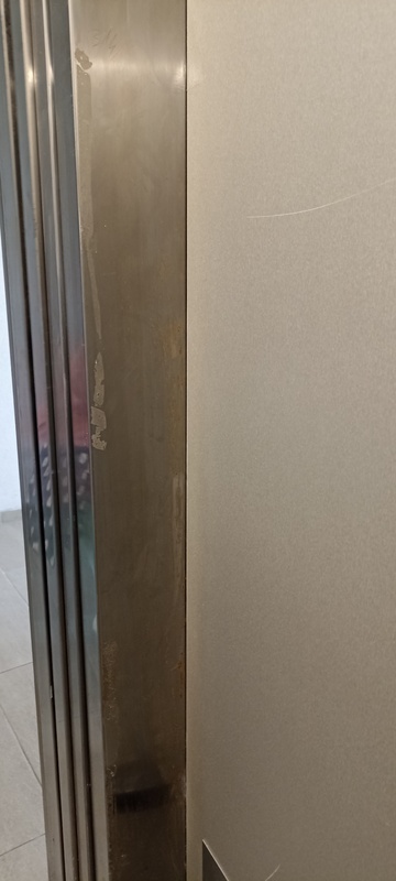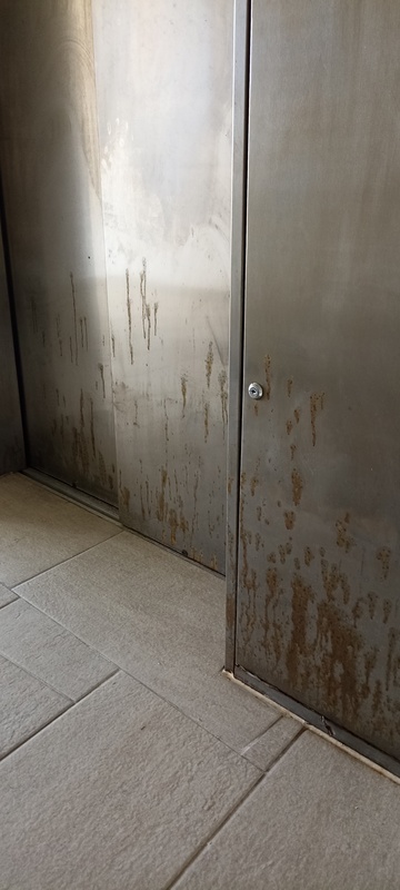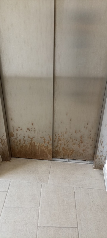 | 74. | „B” lépcsőház 5. emeletén a liftakna ajtó korrodálódott. BK Javítjuk BK Elkészült: 2025 07 24 KK A liftek utólagos fóliázása nem tekinthető I. osztályú kivitelezésnek, a korrózió ilyen formában történő „tüneti kezelése” nem megfelelő, a takart részek állapota nem ellenőrizhető. Általános | |