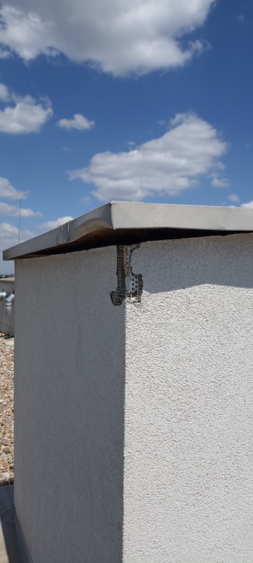 | 36. | „A” lépcsőház tető kiállásnál a lemezfedés nem tart, homlokzati felület sérült. BK Javítjuk KK A vakolt felület javítása megtörtént, a fedés rögzítése továbbra sem megfelelő, további intézkedést igényel. Specifikus | |