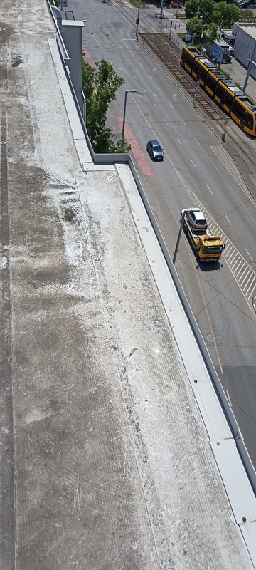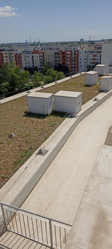 | 45. | Zöldtetőnél nem gondoskodtak védőkorlát kialakításról, az alacsony attika falazat sem segíti a térérzetet, a helyszín fokozottan balesetveszélyes. BK Javítjuk BK Elkészült: 2025 08 12 KK A korlát kialakítása megtörtént, funkcióját ellátja. Specifikus | |