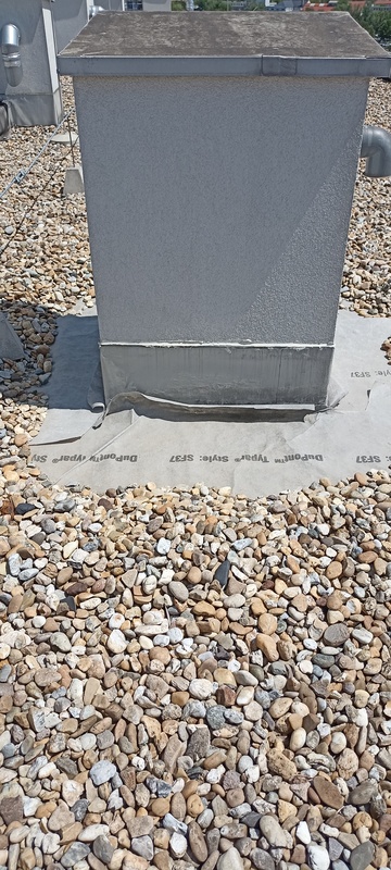 | 38. | Tető kiállásoknál a PVC szigetelés a függőleges felületeken megereszkedett, feltokosodott. BK Ez csak esztétikai probléma most, télen a hőtágulás összéb húzza majd, funkcióját ellátja, beázás nincs KK A megereszkedett szigetelés nem csak esztétikai probléma. Az alkalmazástechnikai útmutató szerint a függőleges felületeken kontaktragasztó alkalmazásával megakadályozható a szigetelés megereszkedése, kinyúlása. BK Megvizsgáljuk, a szavatossági igény terhe melett. KK Jelenleg nem szavatossági, hanem garanciális igényként jelentjük ezt. BK Elkészült: 2025 08 19 KK Az oldalfali PVC szigetelés visszabontásra került és megfelelő technológiával rögzítve lett a függőleges felületen. Az egyes felületek átlapolása, hegesztése szemrevételezés alapján megfelelő. Általános | |