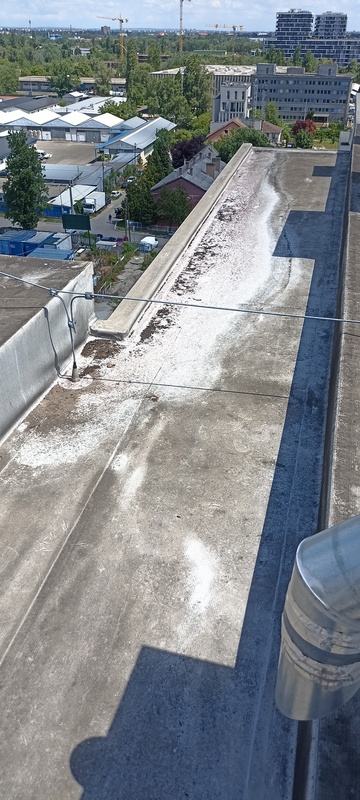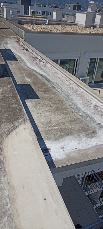 | 50. | „B” lépcsőház tetőn a vízelvezetés nem optimális, pangó víz alakul ki, ami hosszú távon károsítja a PVC szigetelést. BK Megvizsgáljuk a fotózott területet. BK Elkészült: 2025 08 19 KK A területen javítást végeztek, a víz terjedési iránya szemrevételezés alapján megfelelőnek tűnik, de későbbi utánkövetése szükséges. Specifikus | |