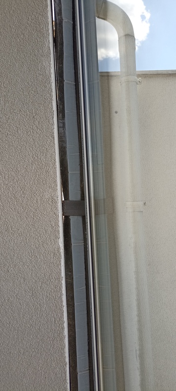 A függőleges ereszcsatorna átmérője a tető méretéhez képest alulméretezettnek tűnik.