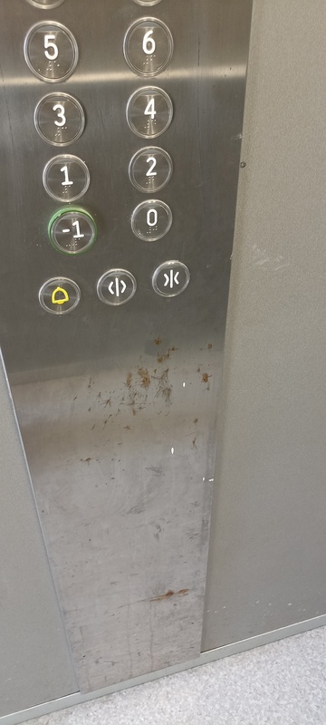 | 26. | „B” lépcsőház 7. emeletén a teherlift aknaajtó alja erősen szennyezett vagy korrodált. BK Javítjuk BK Elkészült: 2025 07 24 KK A liftek utólagos fóliázása nem tekinthető I. osztályú kivitelezésnek, a korrózió ilyen formában történő „tüneti kezelése” nem megfelelő, a takart részek állapota nem ellenőrizhető. Általános | |