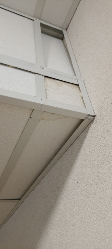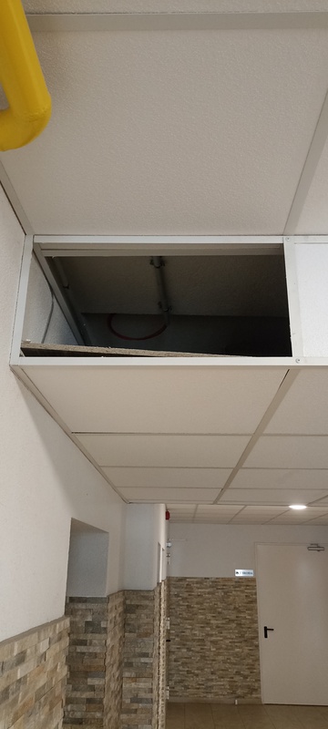 | 119. | „A” lépcsőház előterében lévő mennyezeti panel több helyen sérült, elszíneződött. BK Javítjuk BK Elkészült: 2025 07 28 KK Egyes panelek cseréje megtörtént, szemrevételezés alapján egységes képet mutat. Specifikus | |