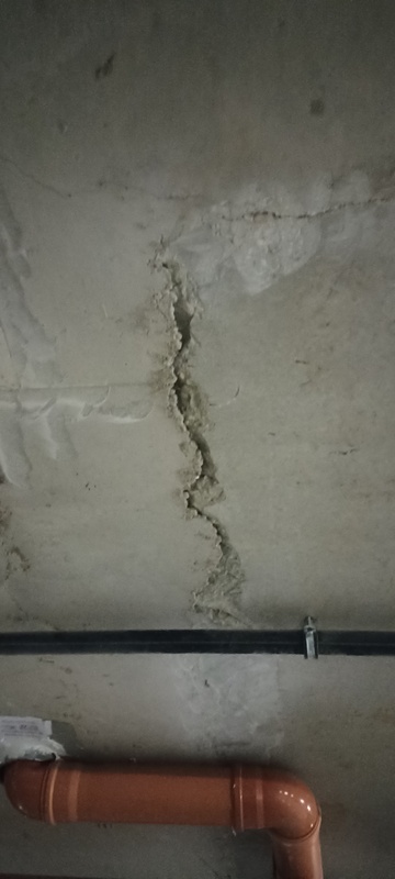 | 153. | Pinceszinten a 91-es beálló feletti födém több helyen megrepedt vagy a födém rosszul kiöntött. BK A toronydaru helyének utólagos kibetonozás miatt lehet látni a ket beton találkozásánál felületi hibát javítjuk BK Elkészült: 2025 08 06 KK A javítás megtörtént. Specifikus | |